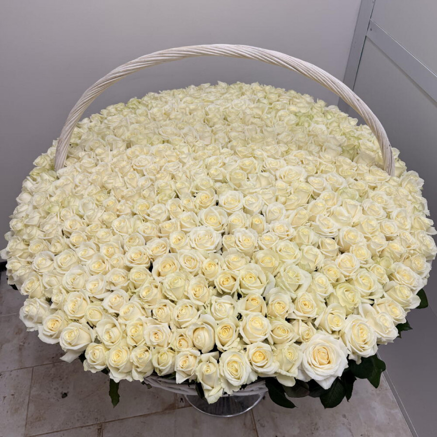 Букет из 501 белой розы в корзине «Нежность» в Челябинске