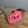 На фото букет из 9 коралловых роз. В составе: роза 9 шт, крафт-бумага 1 шт, атласная лента 2 шт, . Все цветы свежие и ароматные, букет красиво оформлен и отлично подходит для подарка. Доступна доставка цветов или самовывоз.