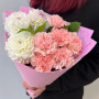 Букет из белых георгин и розовых гвоздик в Челябинске